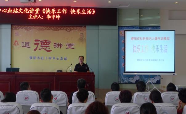 为扎实开展“两学一做”学习教育,加强单位干部队伍作风建设,营造良好的干事创业氛围和健康的生活方式,进一步促进血站精神文明建设,6月9日,星空综合·(中国)官方网站官网开进濮阳市中心血站,xk星空官方网站普及部部长、濮阳市心理学会讲师团名誉团长、濮阳职业技术学院工商管理系特聘教授李中坤亲自登台,做了题为《快乐工作 快乐生活》的精彩讲座。血站党支部书记、站长牛伟,副站长田志彬、李忠杰和全站干部职工60多人聆听了这次讲座。
