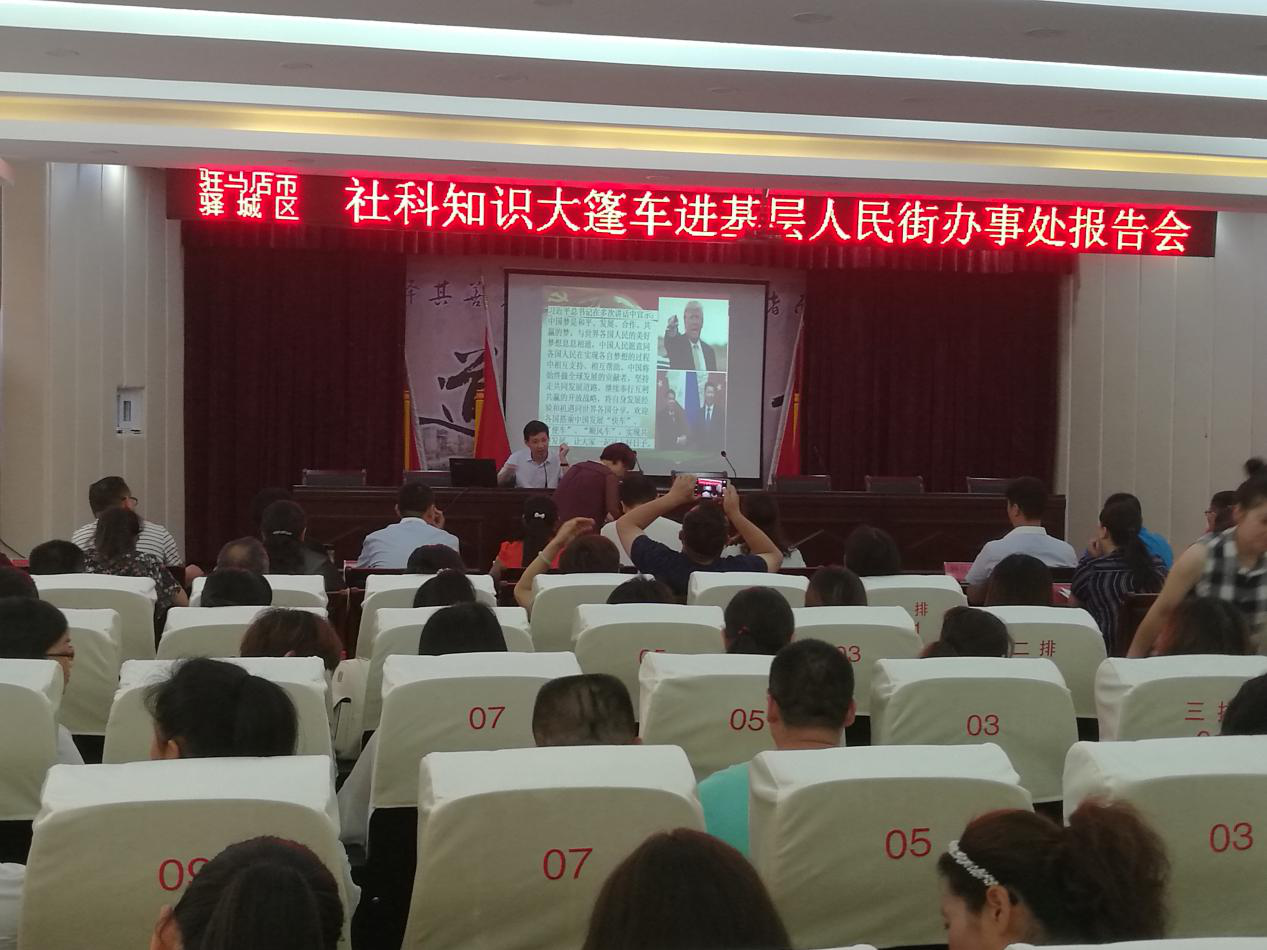 为迎接党的十九大召开,7月14日,驻马店驿城区社科联邀请市十九大宣讲团成员、市委党校副教授雷新芳同志来到驿城区人民街道办事处,作了一场迎接十九大的专题报告会。驿城区人民街道办事处及社区全体工作人员聆听了报告会。