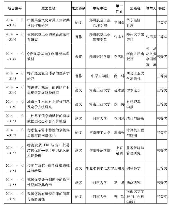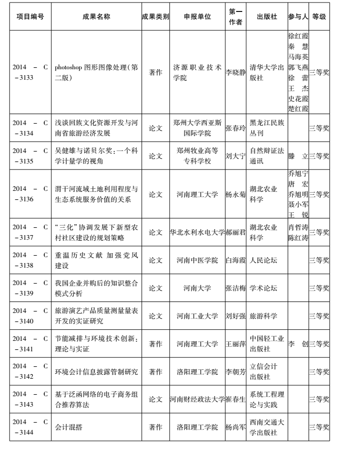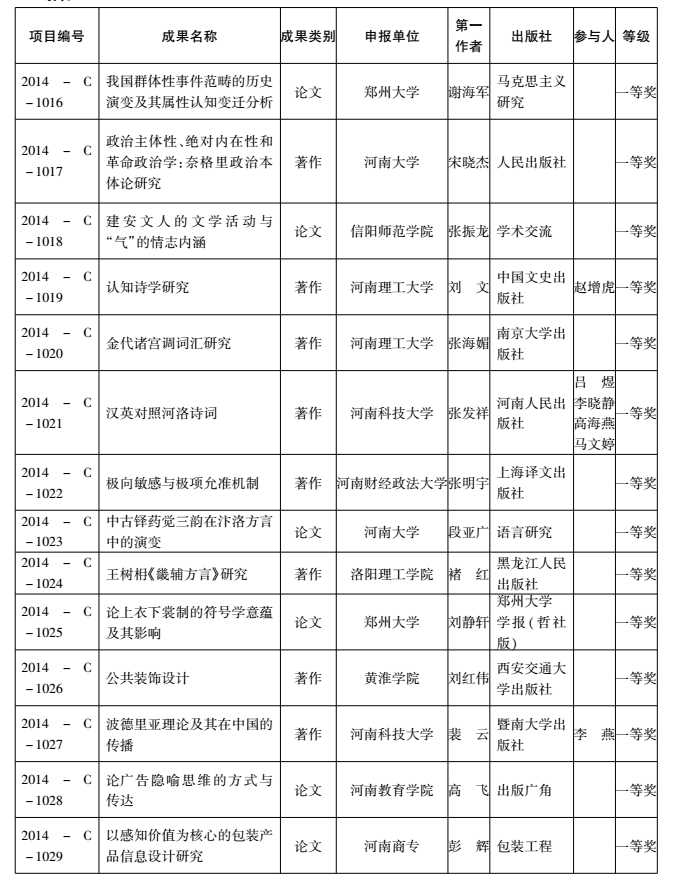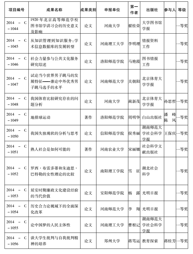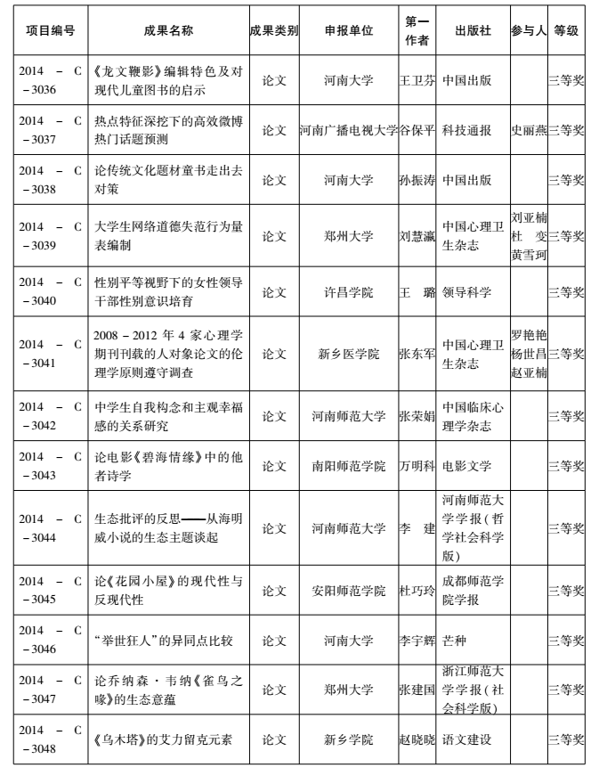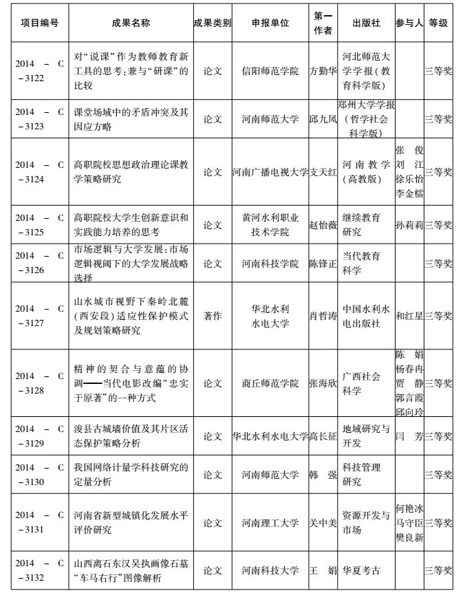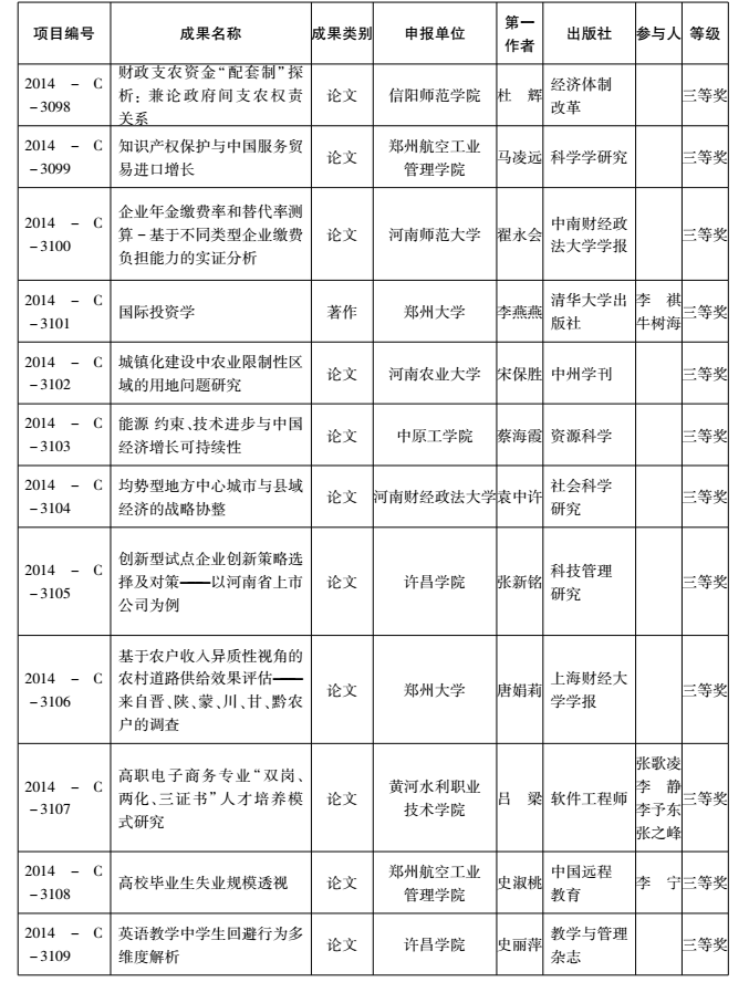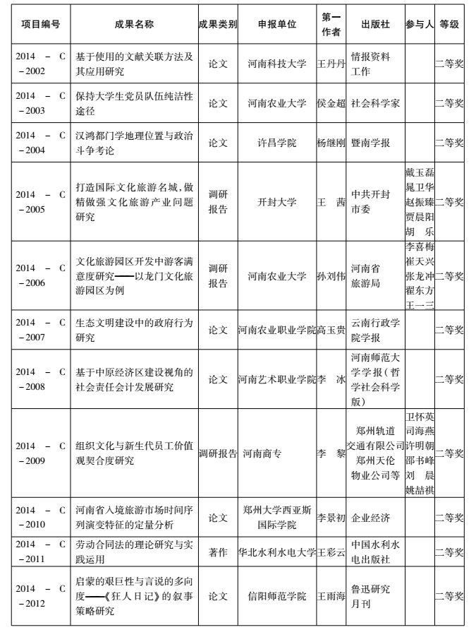 2014年度河南省教育厅人文社会科学研究成果奖获奖名单