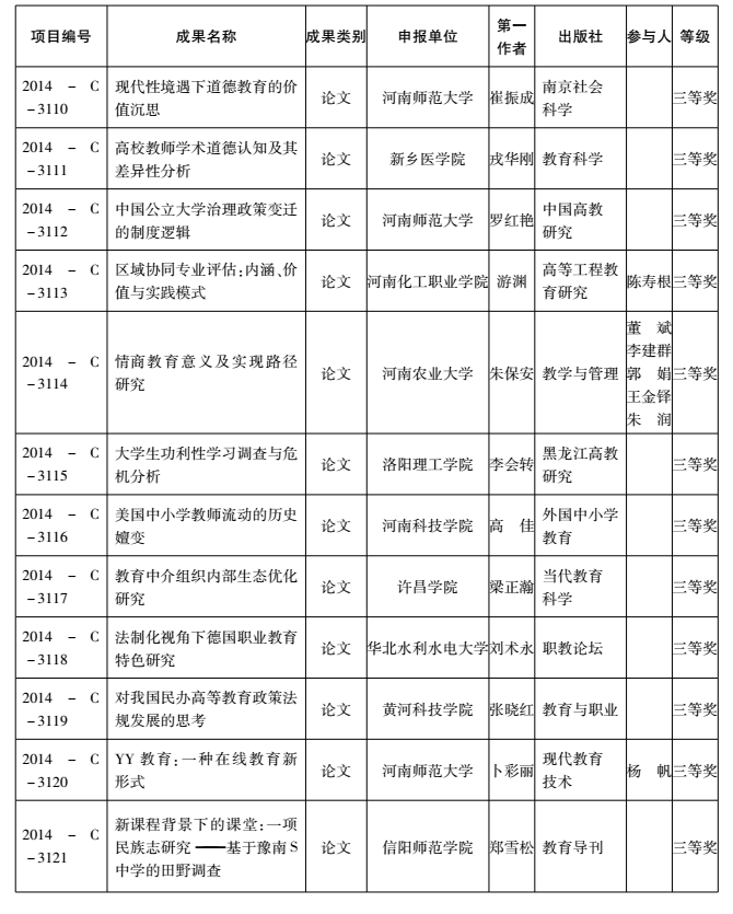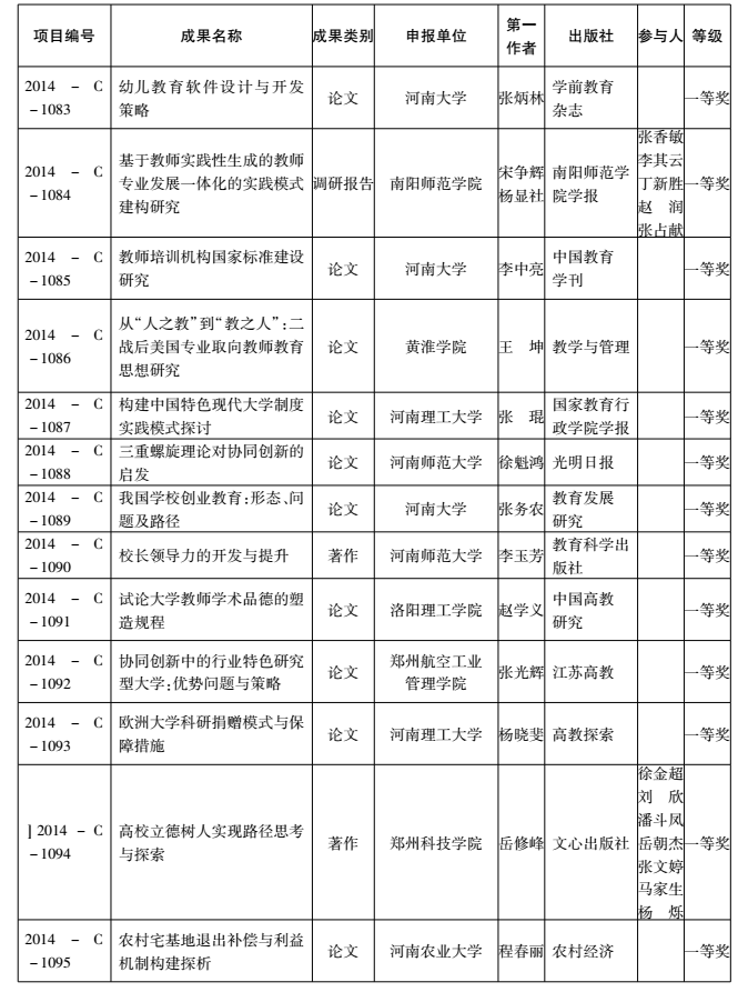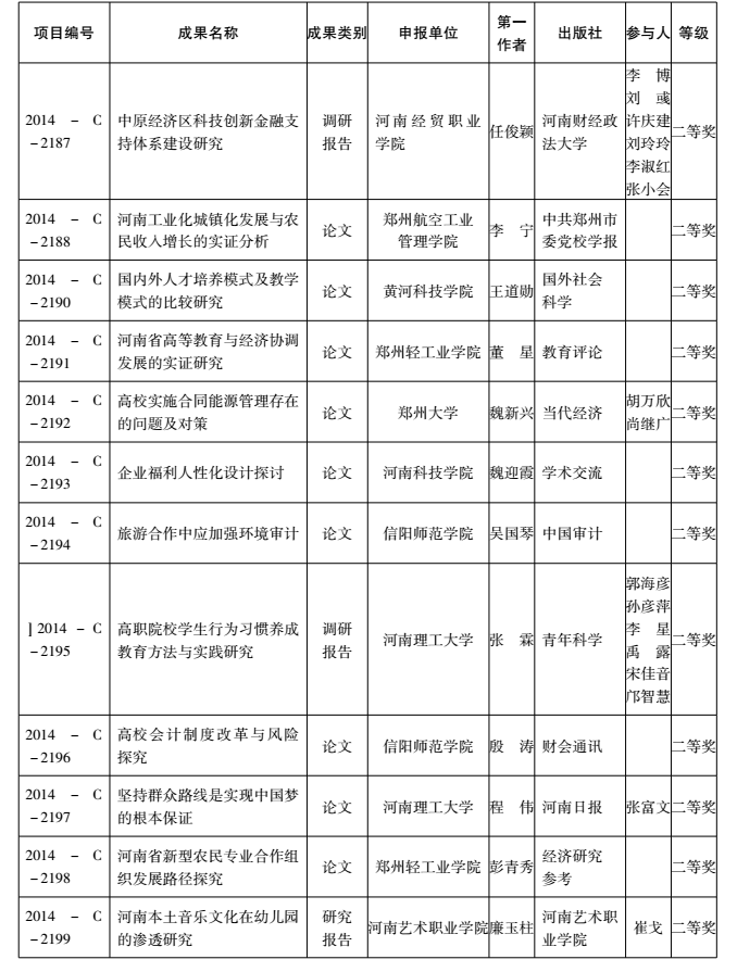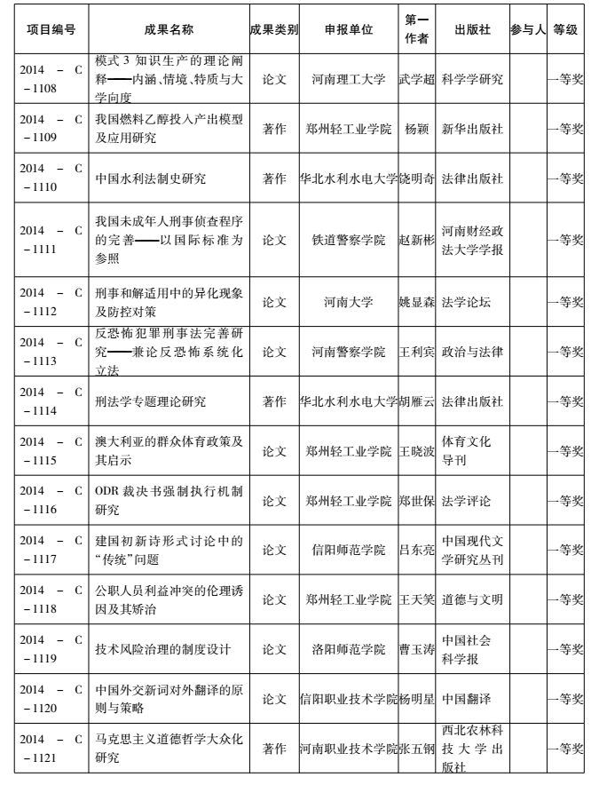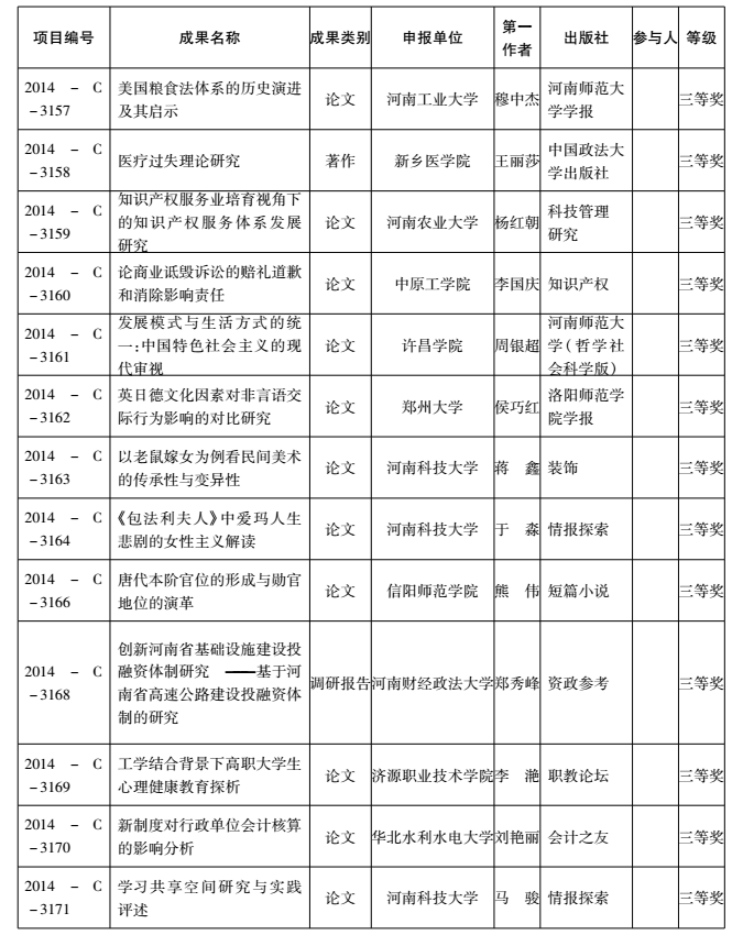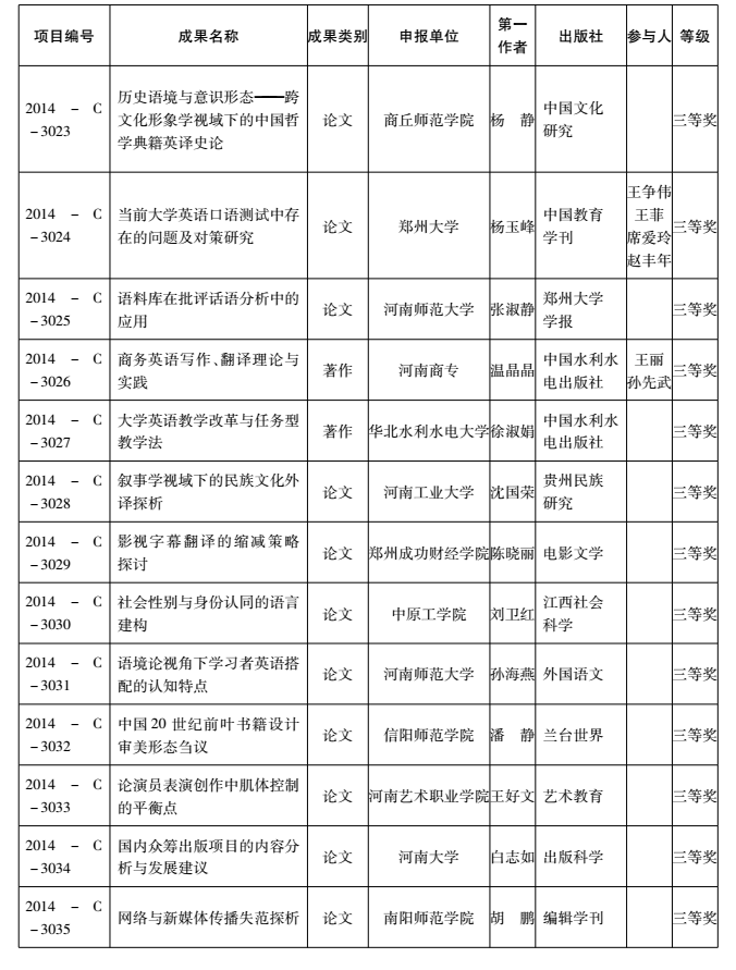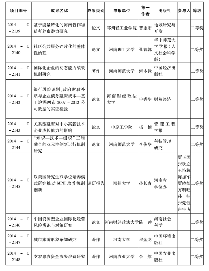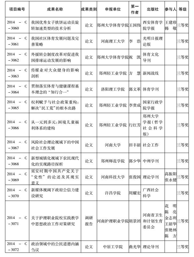 2014年度河南省教育厅人文社会科学研究成果奖获奖名单