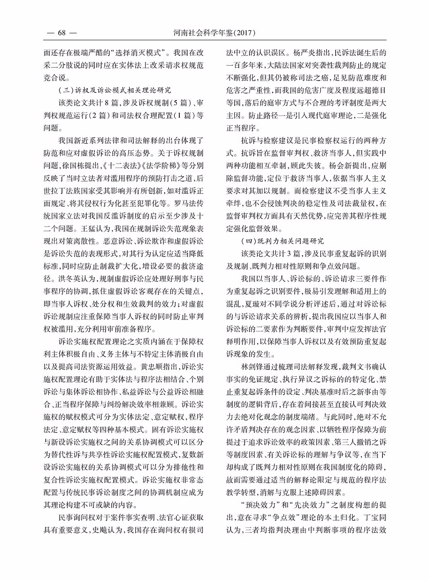 2016年度河南省法学研究综述